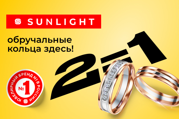В Sunlight можно выгодно приобрести обручальные кольца по акции «2=1» по коду: ПАРА. В сети представлен большой выбор ювелирных украшений, которые можно приобрести как офлайн, так и на сайте, и в мобильном приложении в один клик. В Sunlight представлен огромный ассортимент ювелирных украшений российского и импортного производства. Все изделия проходят строгий контроль качества, качество бриллиантов от 0.5 карат подтверждается сертификатами независимых геммологических лабораторий: GIA (США) и MGC (Россия). На «Бриллианты Якутии» действует пожизненная гарантия. Sunlight – самый популярный бренд на ювелирном рынке.