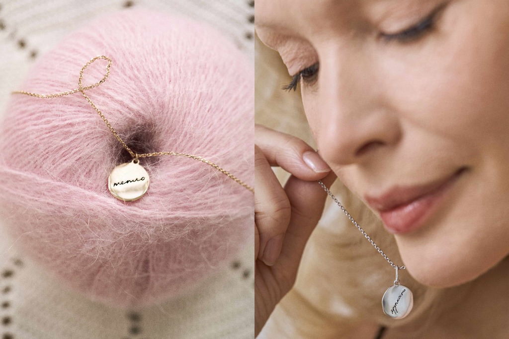 Визуальная идея коллекции основана на «почерке мамы». Команды брендов попросили своих мам написать выбранные слова от руки и на основе этих образцов создали единый графический стиль для дизайна кулонов.