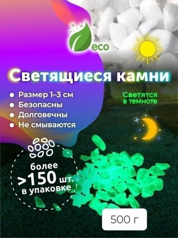 ВНИМАНИЕ! ЭФФЕКТ СВЕЧЕНИЯ ЯРКО ВЫРАЖЕН ПРИ КОНТРАСТНОЙ СМЕНЕ ОСВЕЩЕНИЯ! В ЛАНДШАФТЕ ОН СЛАБО ВЫРАЖЕН! Мраморная крошка белая Светящиеся камни - светятся длительное время (в отличии от пластиковых камней ) выполняют декоративную функцию + СВЕТЯТСЯ В ТЕМНОТЕ!