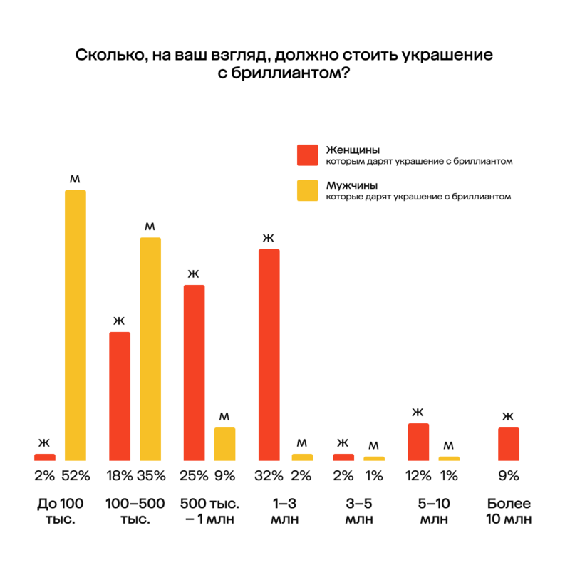 Ювелирный бренд SMART DIAMONDS (принадлежит компании «585 Золотой») провел исследование и выяснил, как россияне относятся к размеру и происхождению драгоценных камней. В опросе, который проходил с 4 по 12 октября, приняли участие 2 000 человек по всей Рос
